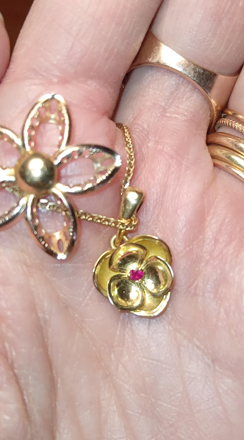 Pendentif fleur en or avec rubis